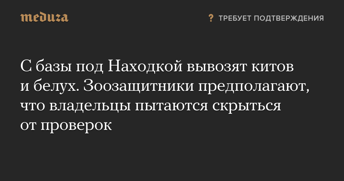 С базы под Находкой вывозят китов и белух. Зоозащитники предполагают, что владельцы пытаются скрыться от проверок
