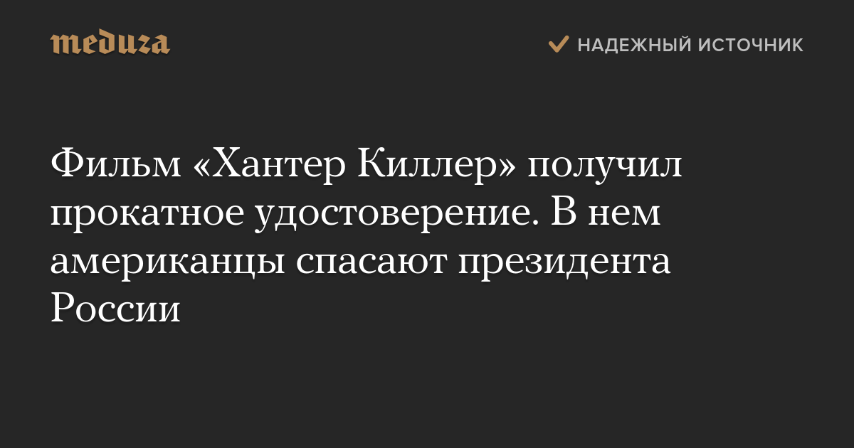 Фильм «Хантер Киллер» получил прокатное удостоверение. В нем американцы спасают президента России