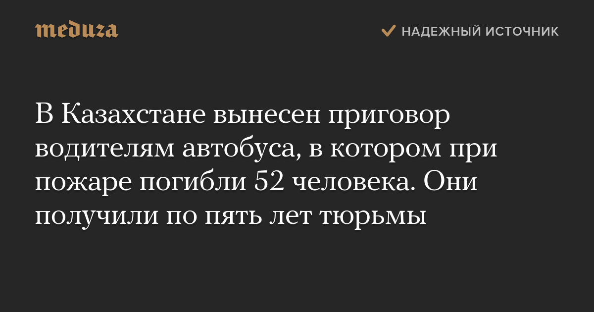 В Казахстане вынесен приговор водителям автобуса, в котором при пожаре погибли 52 человека. Они получили по пять лет тюрьмы