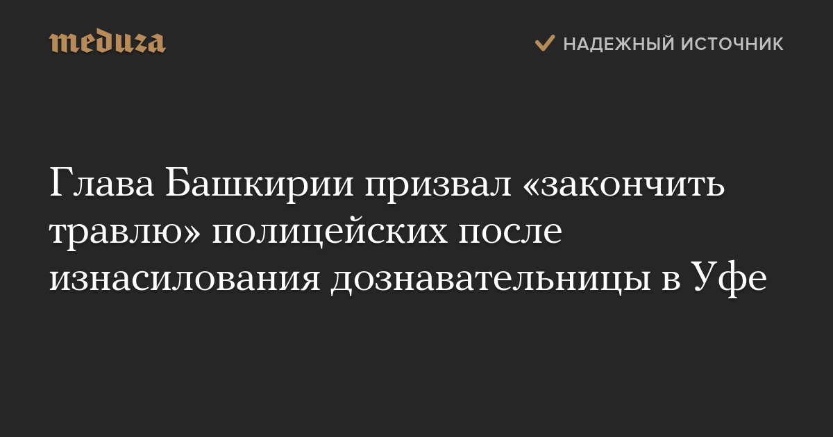 Глава Башкирии призвал «закончить травлю» полицейских после изнасилования дознавательницы в Уфе