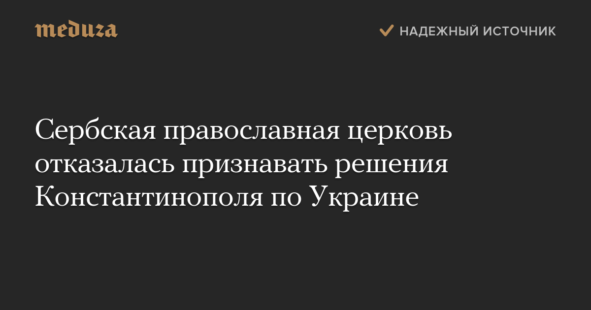 Архиерейский собор Сербской православной церкви отказался признавать решения Константинопольского патриархата по Украине обязательными для исполнения и решил не устанавливать каноническое общение с украинскими церквями.