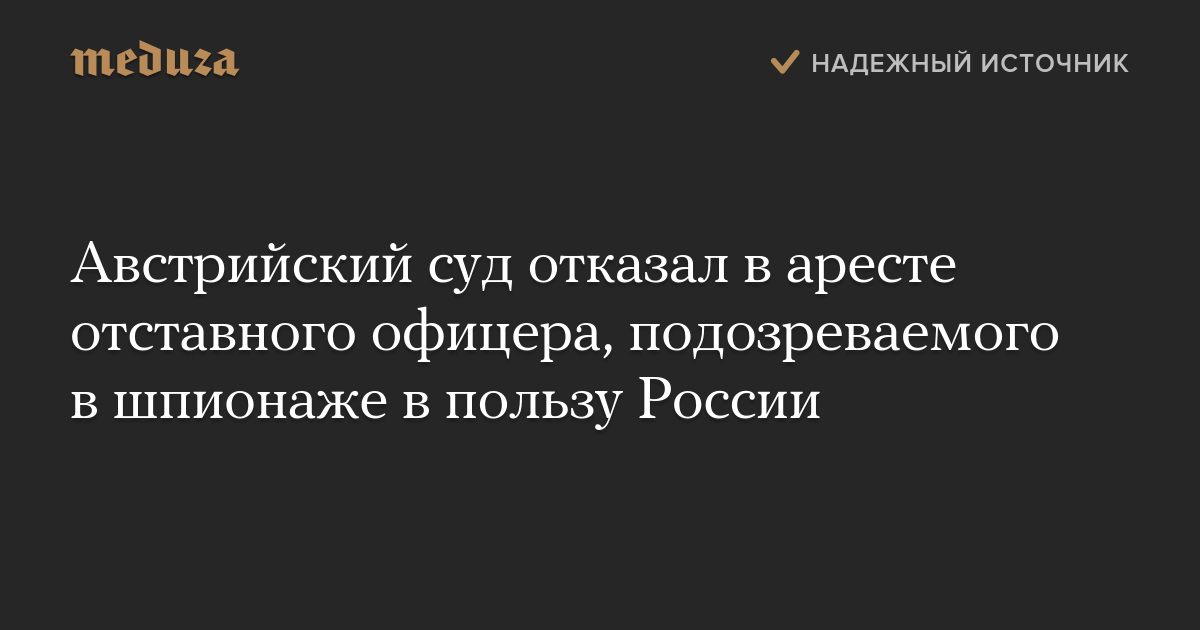 Земельный суд Зальцбурга отказался заключить под стражу отставного полковника австрийской армии, задержанного по подозрению в шпионаже в пользу России. Об этом сообщает издание Kronen Zeitung.