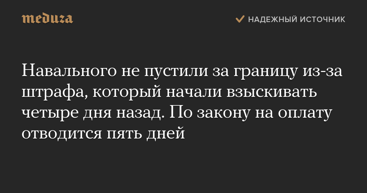 Навального не пустили за границу из-за штрафа, который начали взыскивать четыре дня назад. По закону на оплату отводится пять дней