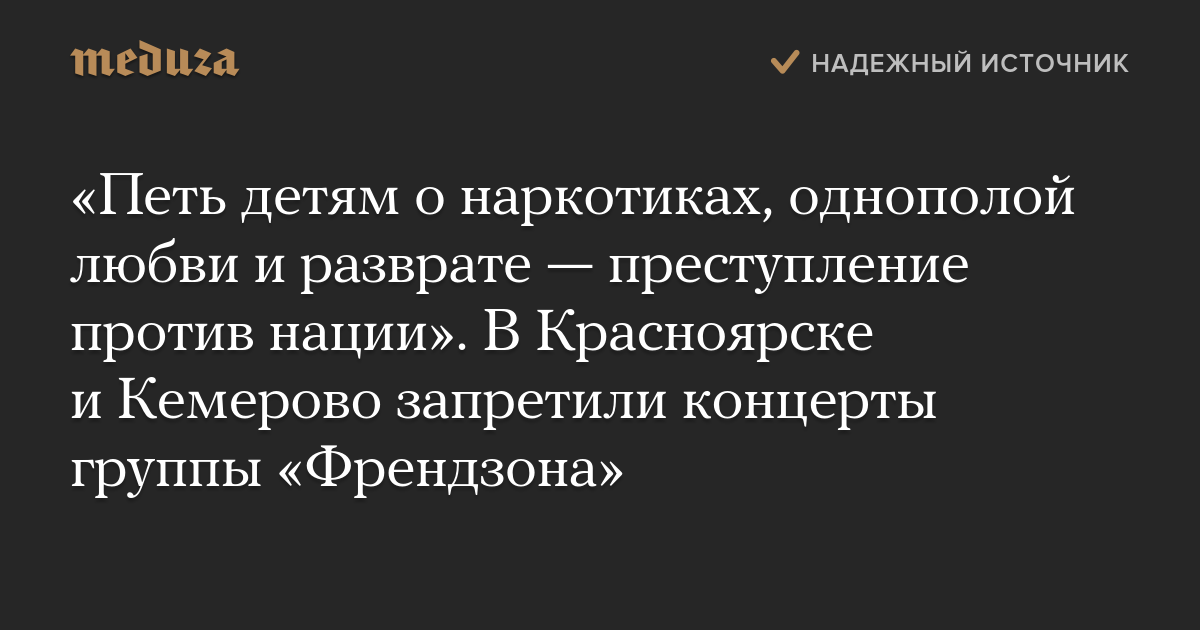 «Петь детям о наркотиках, однополой любви и разврате — преступление против нации». В Красноярске и Кемерово запретили концерты группы «Френдзона»