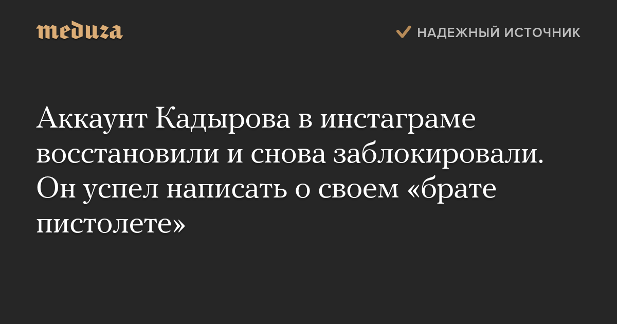 Аккаунт Кадырова в инстаграме восстановили и снова заблокировали. Он успел написать о своем «брате пистолете»