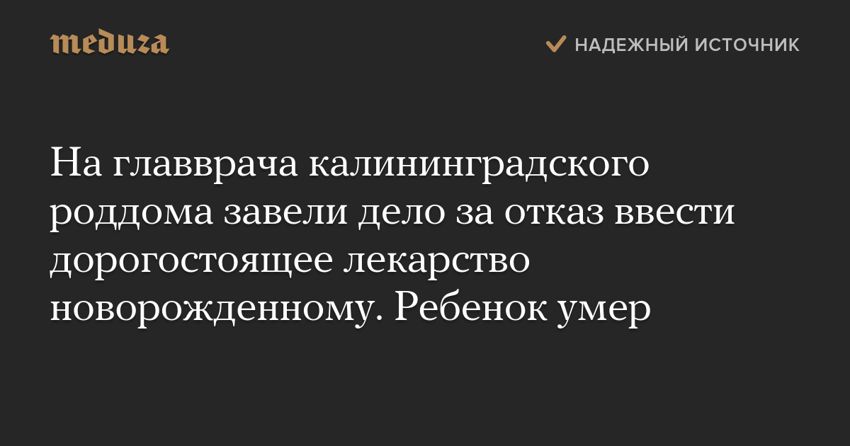 На главврача калининградского роддома завели дело за отказ ввести дорогостоящее лекарство новорожденному. Ребенок умер