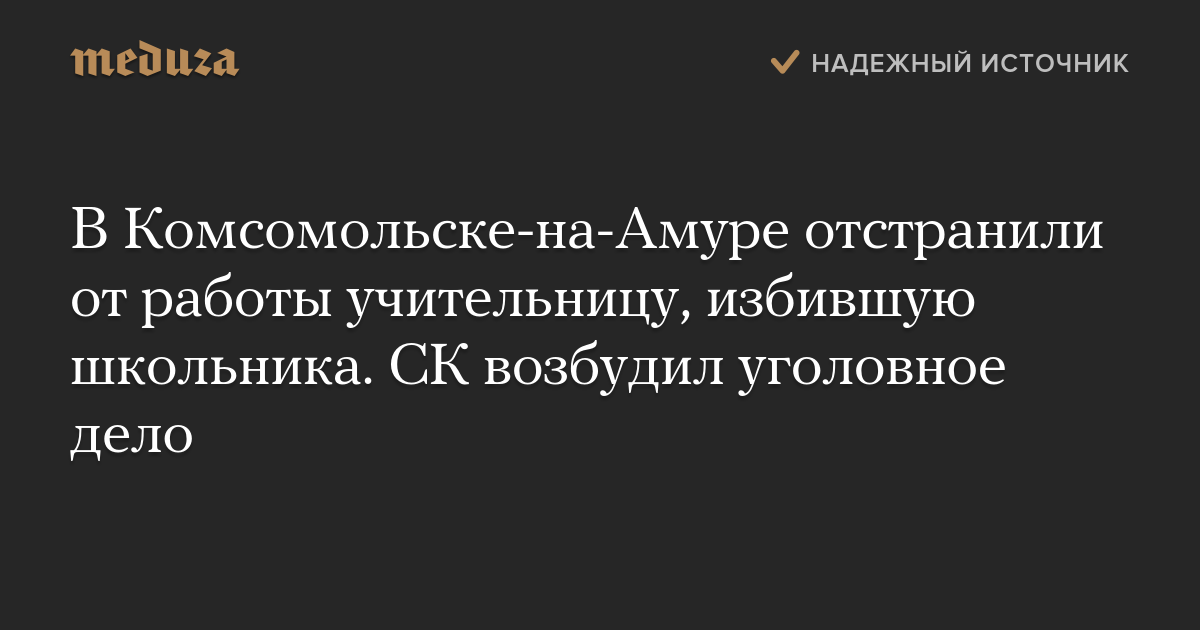 В Комсомольске-на-Амуре отстранили от работы учительницу, избившую школьника. СК возбудил уголовное дело