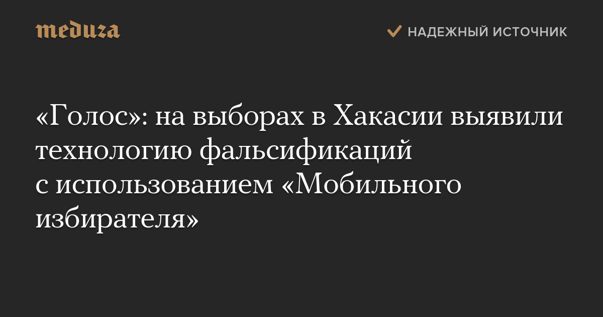На выборах губернатора Хакасии 11 ноября произошли попытки массовых фальсификаций с использованием системы «Мобильный избиратель», сообщило «Медузе» движение в защиту прав избирателей «Голос».