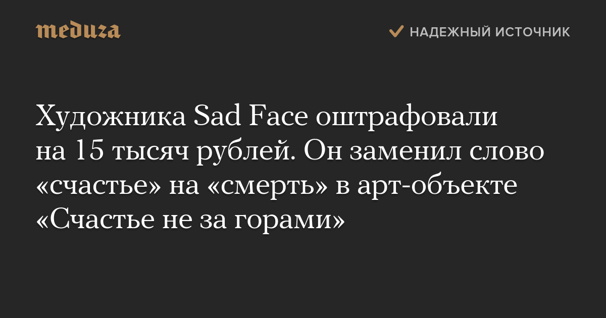Художника Sad Face оштрафовали на 15 тысяч рублей. Он заменил слово «счастье» на «смерть» в арт-объекте «Счастье не за горами»