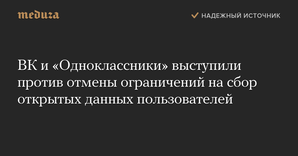 ВК и «Одноклассники» выступили против отмены ограничений на сбор открытых данных пользователей
