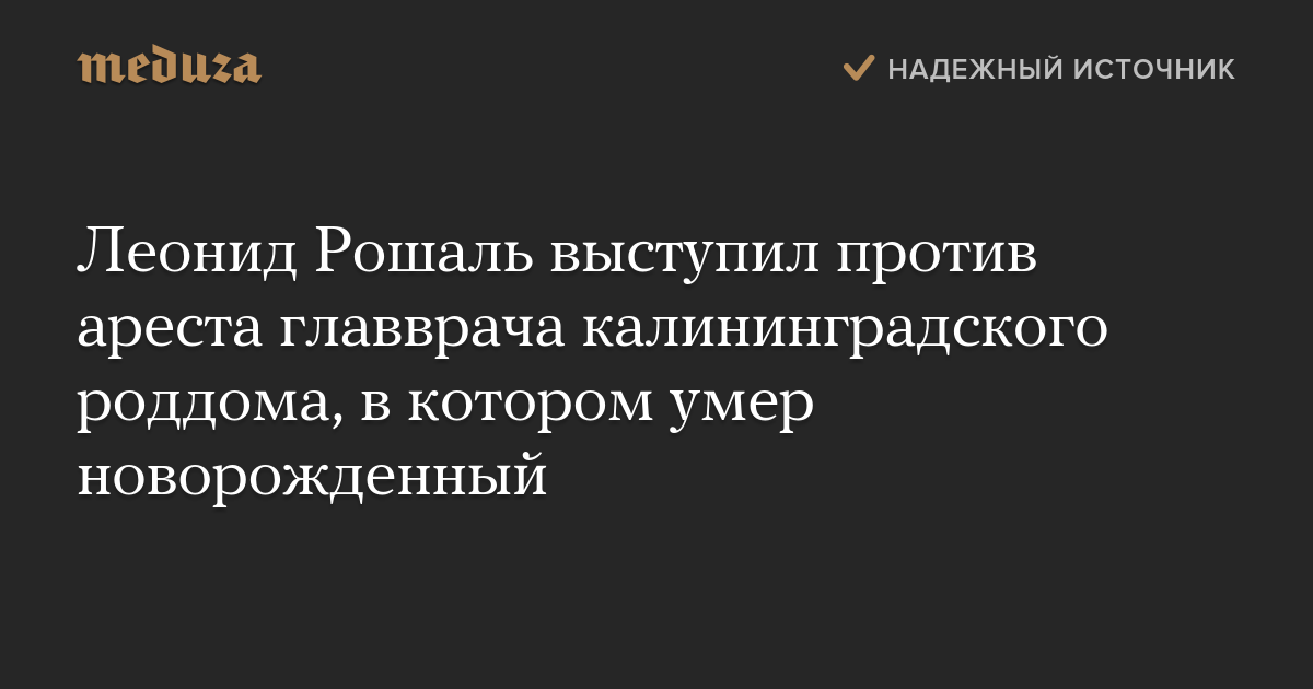 Леонид Рошаль выступил против ареста главврача калининградского роддома, в котором умер новорожденный