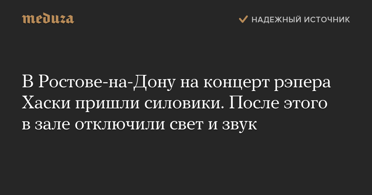 Концерт рэпера Хаски в Ростове-на-Дону прошел без света и звука после того, как на площадку пришли силовики. Об этом менеджеры Хаски сообщили правозащите «Открытой России».