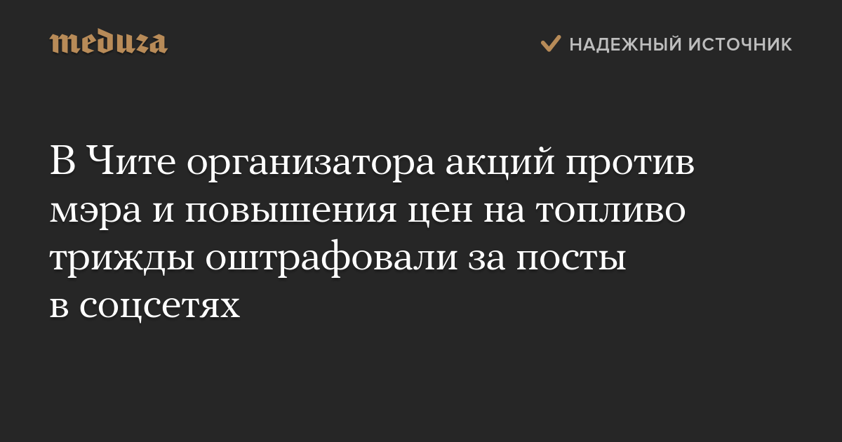 В Чите организатора акций против мэра и повышения цен на топливо трижды оштрафовали за посты в соцсетях