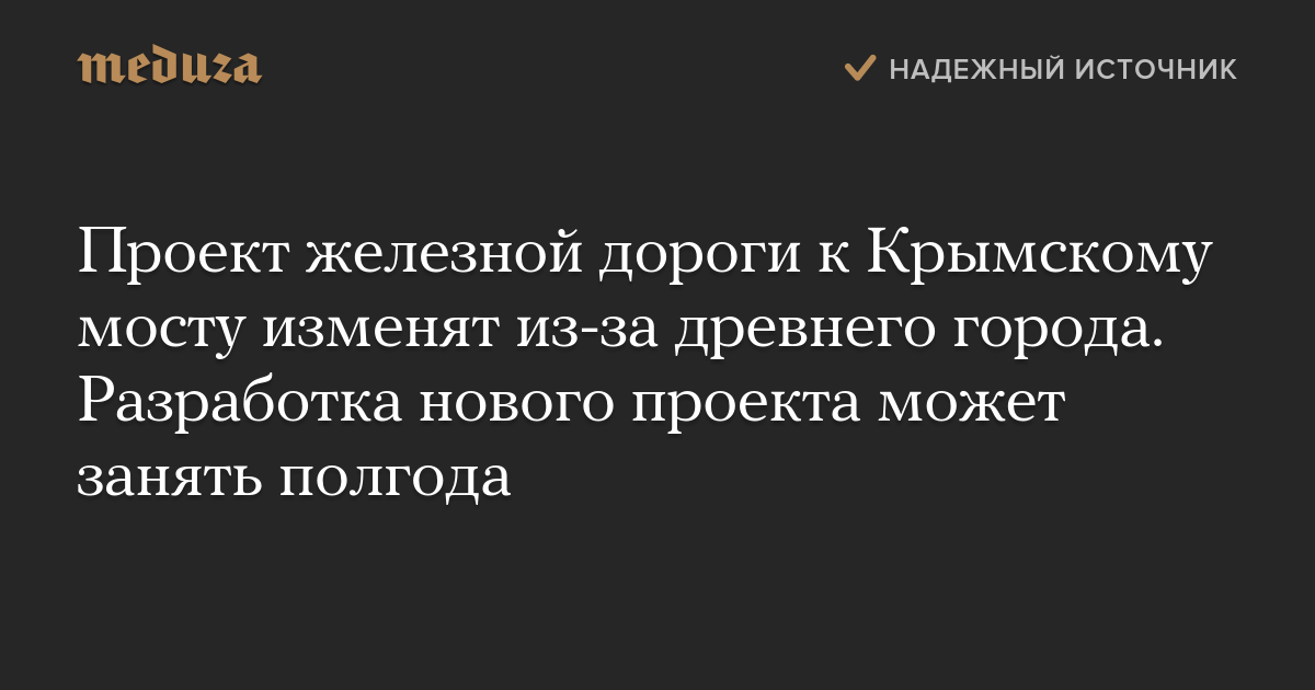Проект железной дороги к Крымскому мосту изменят из-за древнего города. Разработка нового проекта может занять полгода