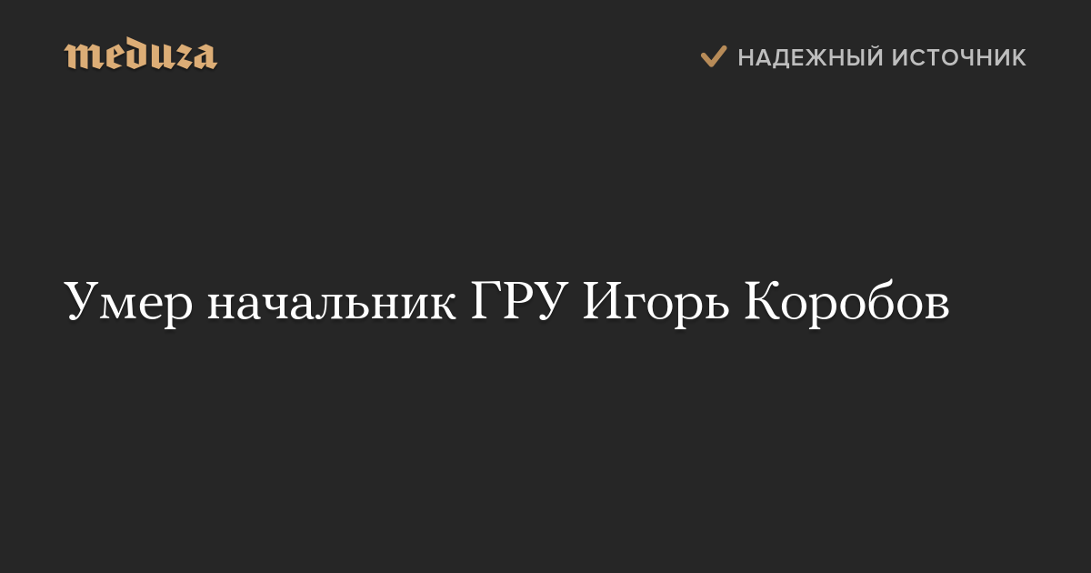 Умер начальник Главного управления Генерального штаба Вооруженных сил (ГРУ) генерал-полковник Игорь Коробов. Об этом пишет «Интерфакс» со ссылкой на Минобороны России.