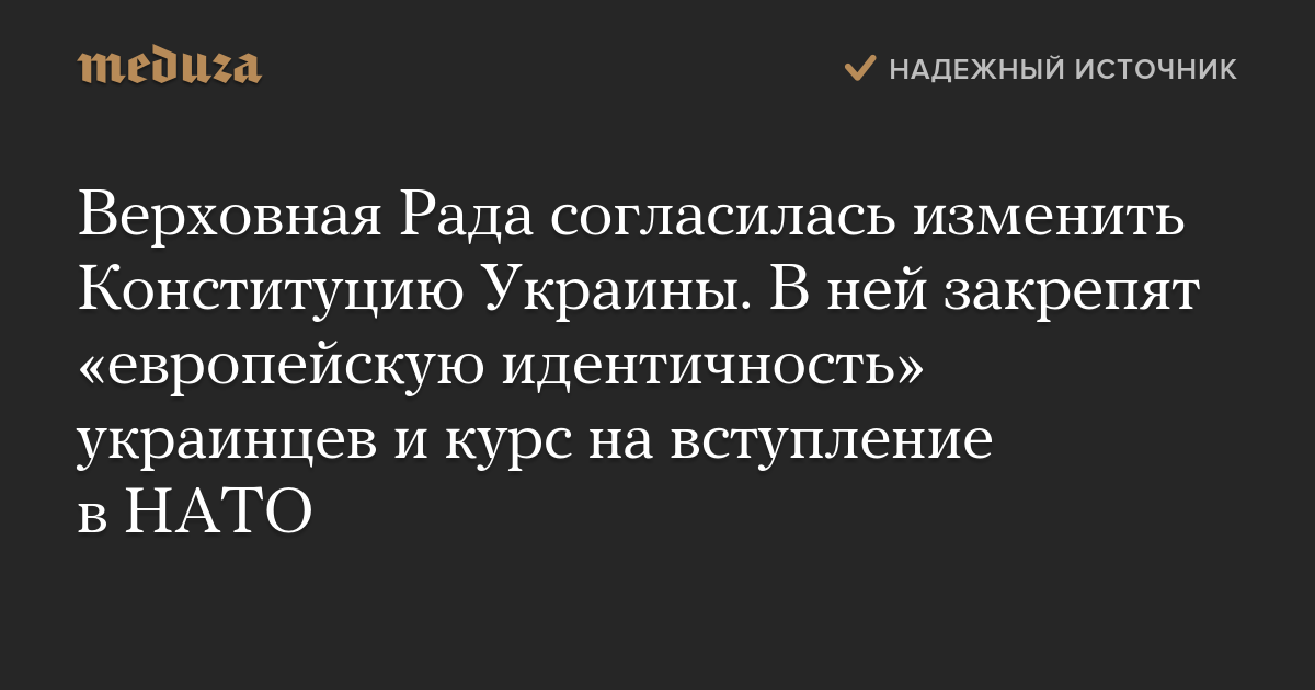 Верховная Рада согласилась изменить Конституцию Украины. В ней закрепят «европейскую идентичность» украинцев и курс на вступление в НАТО