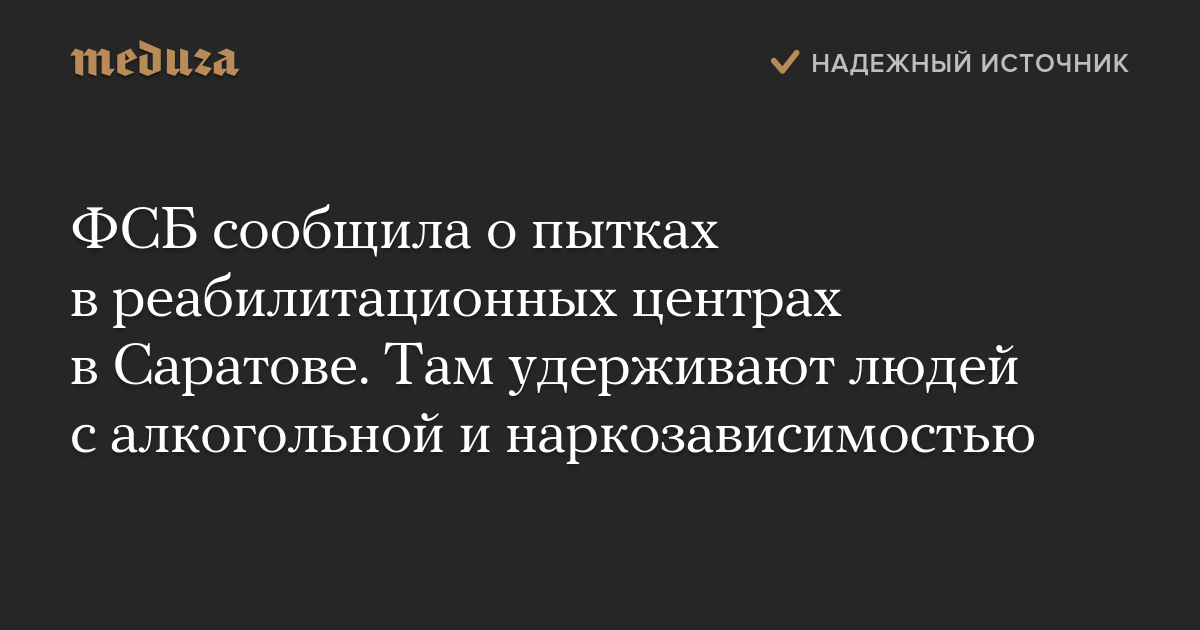 ФСБ сообщила о выявлении в Саратове двух реабилитационных центров для людей с наркотической и алкогольной зависимостью, где людей удерживали против их воли и пытали.
