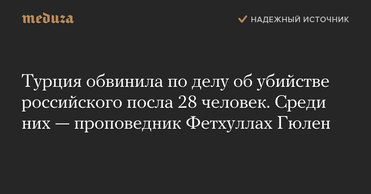 Турция обвинила по делу об убийстве российского посла 28 человек. Среди них — проповедник Фетхуллах Гюлен