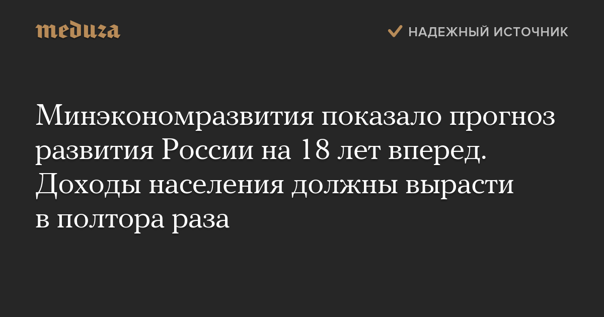 Минэкономразвития показало прогноз развития России на 18 лет вперед. Доходы населения должны вырасти в полтора раза