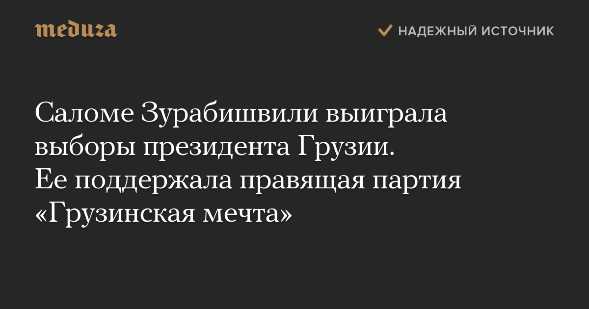 Саломе Зурабишвили выиграла выборы президента Грузии. Ее поддержала правящая партия «Грузинская мечта»