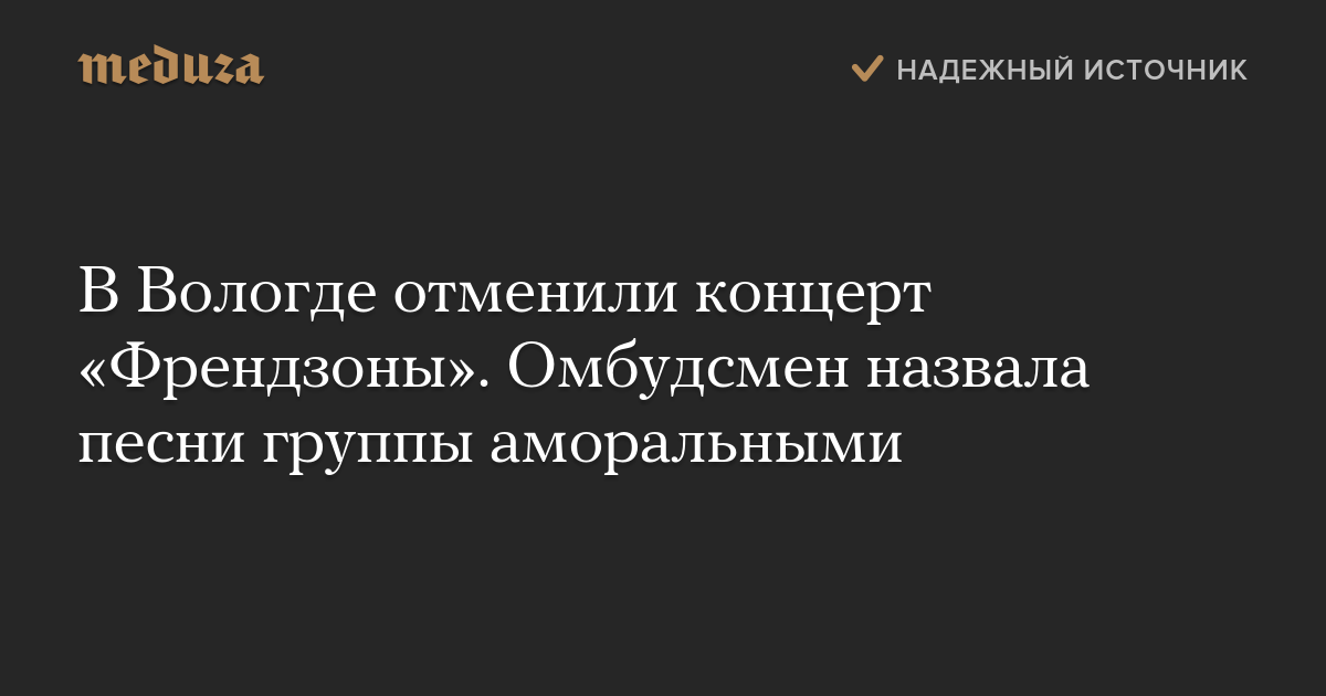 В Вологде отменили концерт «Френдзоны». Омбудсмен назвала песни группы аморальными