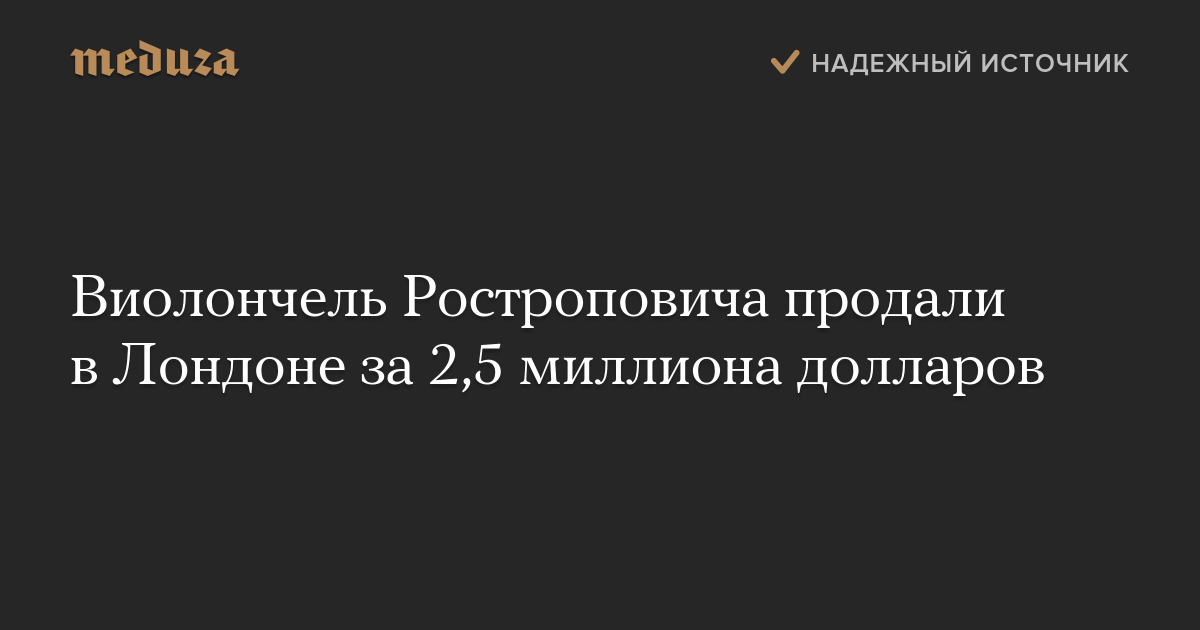 Виолончель, принадлежавшая российскому музыканту Мстиславу Ростроповичу, продана на аукционе Sothebyʼs в Лондоне за 1,93 миллиона фунтов стерлингов (2,5 миллиона долларов).