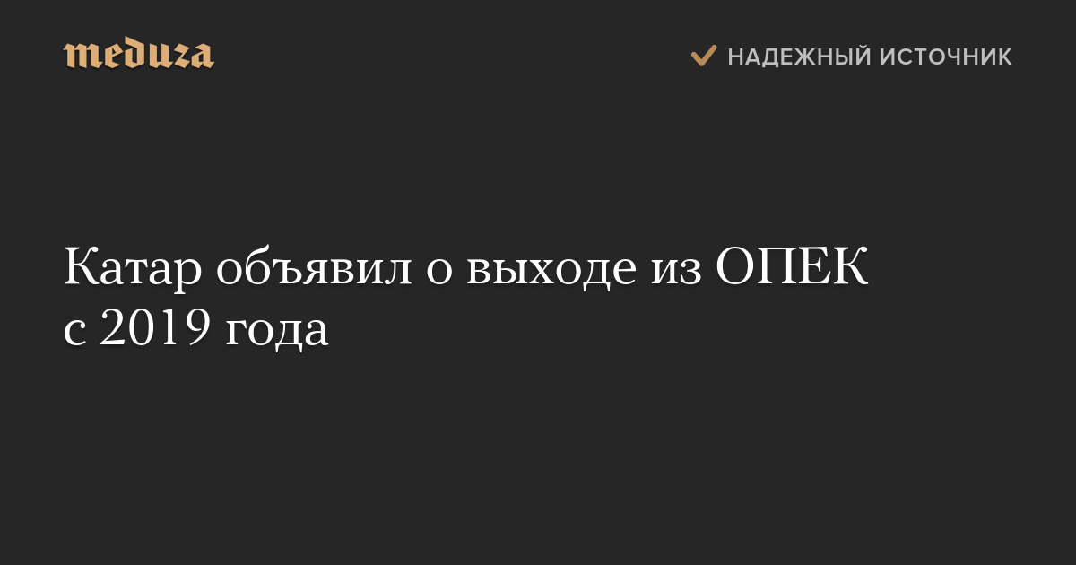 Катар покинет Организацию стран — экспортеров нефти (ОПЕК) с 1 января 2019 года, сообщает Bloomberg.