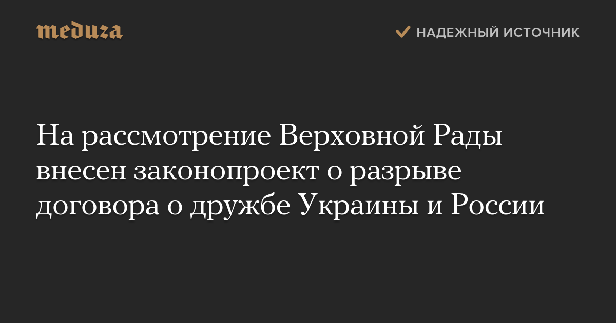 На рассмотрение Верховной Рады внесен законопроект о разрыве договора о дружбе Украины и России