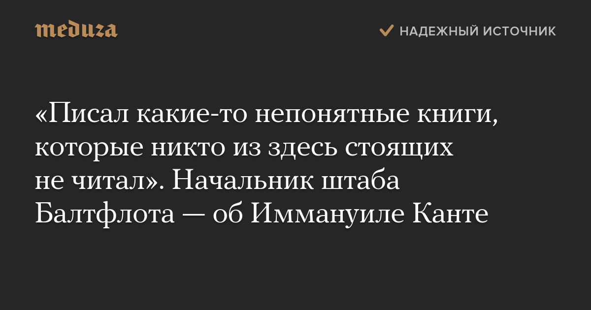«Писал какие-то непонятные книги, которые никто из здесь стоящих не читал». Начальник штаба Балтфлота — об Иммануиле Канте
