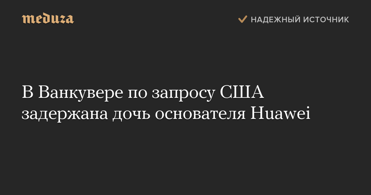 Власти Канады задержали дочь основателя Huawei Мэн Ваньчжоу, являющуюся также финансовым директором и заместителем председателя совета директоров китайской компании.