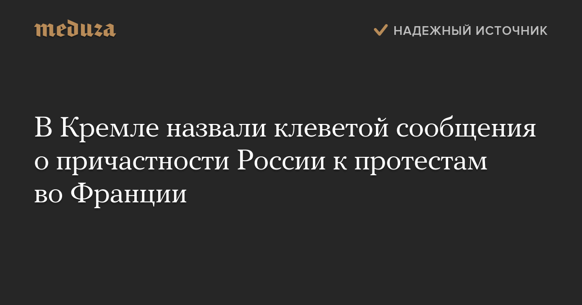 В Кремле назвали клеветой сообщения о причастности России к протестам во Франции