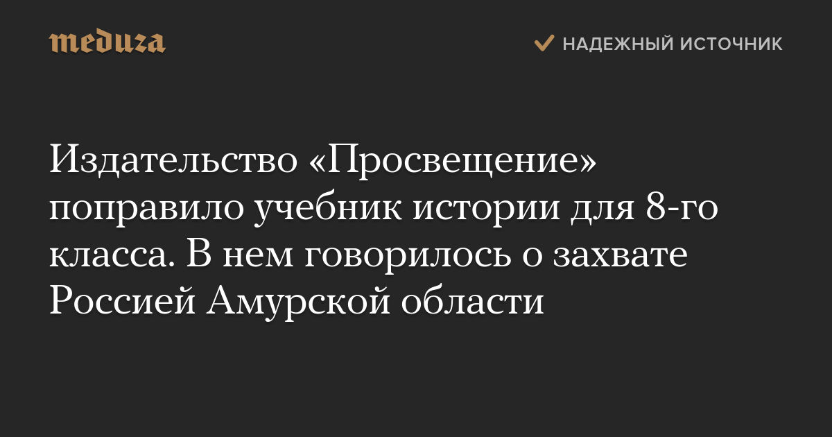 Издательство «Просвещение» поправило учебник истории для 8-го класса. В нем говорилось о захвате Россией Амурской области
