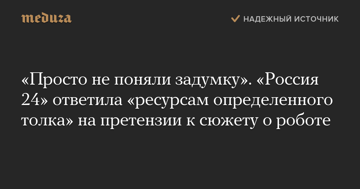 «Просто не поняли задумку». «Россия 24» ответила «ресурсам определенного толка» на претензии к сюжету о роботе