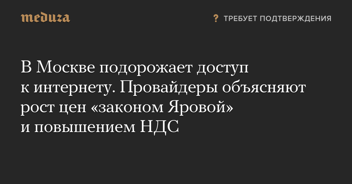 В Москве подорожает доступ к интернету. Провайдеры объясняют рост цен «законом Яровой» и повышением НДС