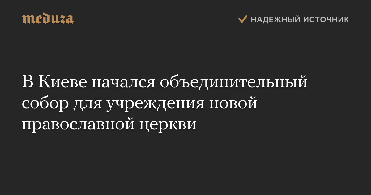 В Киеве в Софийском соборе начался объединительный собор, по итогам которого, как ожидается, будет учреждена новая поместная украинская православная церковь. Об этом сообщил сайт УПЦ Киевского патриархата.