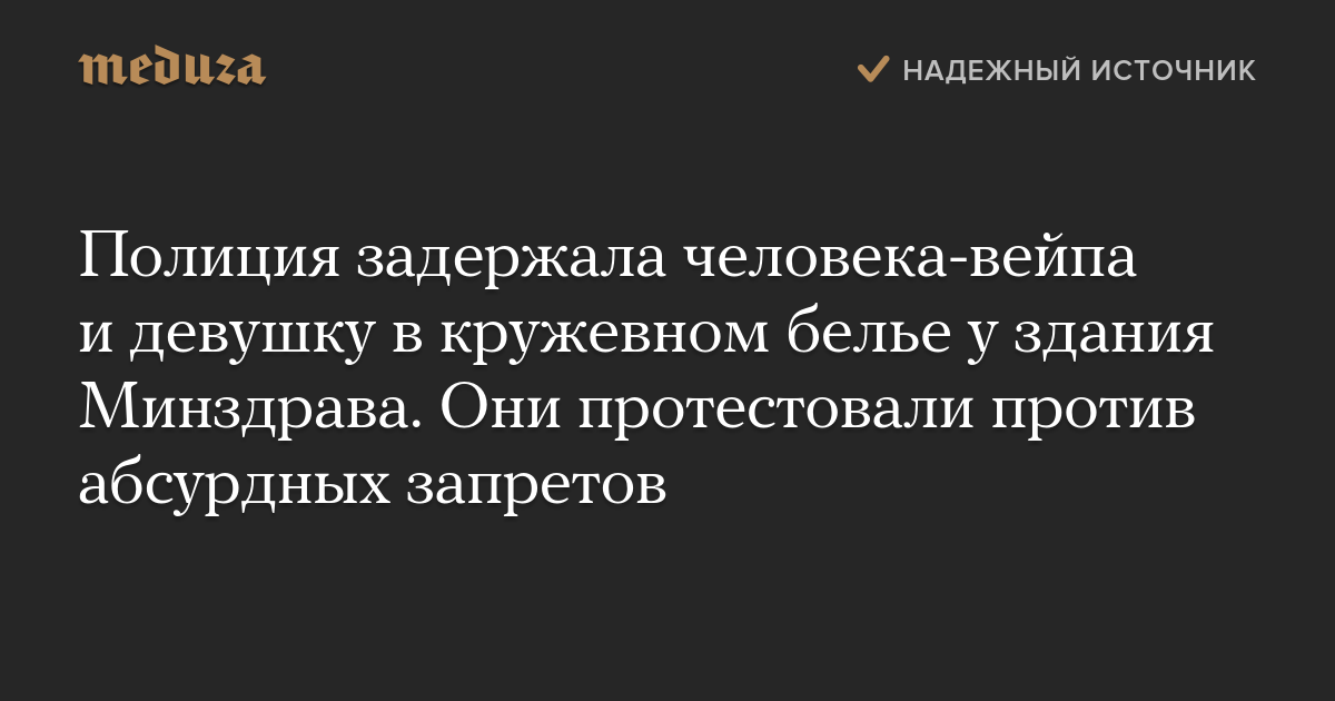 Полиция задержала человека-вейпа и девушку в кружевном белье у здания Минздрава. Они протестовали против абсурдных запретов