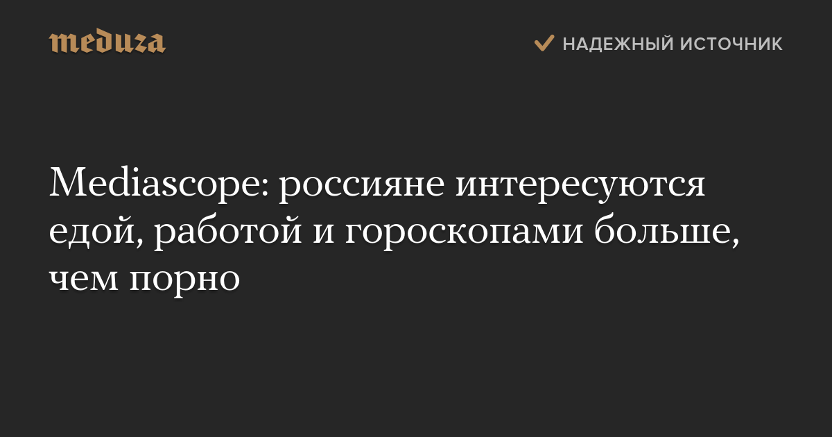 Mediascope: россияне интересуются едой, работой и гороскопами больше, чем порно
