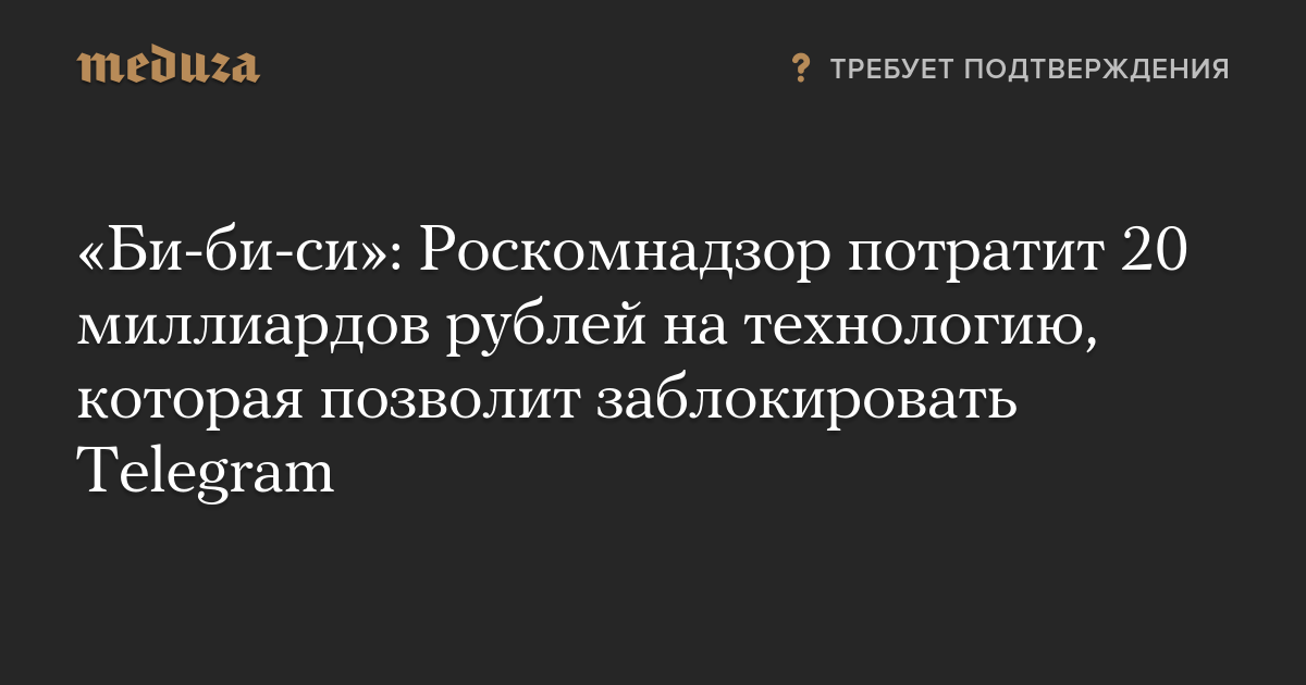 «Би-би-си»: Роскомнадзор потратит 20 миллиардов рублей на технологию, которая позволит заблокировать Telegram