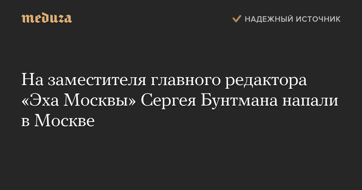 На заместителя главного редактора «Эха Москвы» Сергея Бунтмана совершено вооруженное нападение. Об этом в фейсбуке сообщила супруга журналиста Лидия Скрябина.