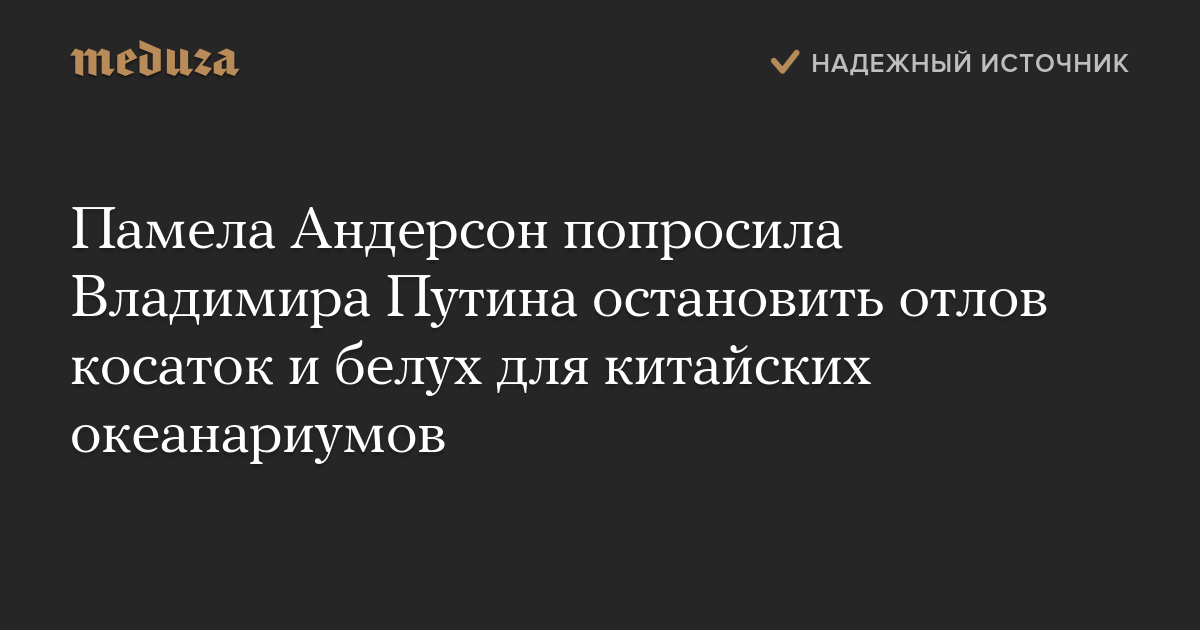 Актриса и зоозащитница Памела Андерсон написала президенту России Владимиру Путину письмо с просьбой остановить отлов диких косаток и белух для продажи в китайские океанариумы. Об этом Андерсон сообщила на сайте своего благотворительного фонда.
