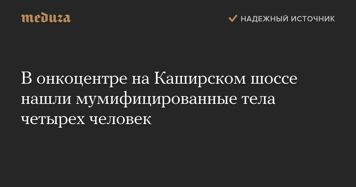 В онкоцентре на Каширском шоссе нашли мумифицированные тела четырех человек