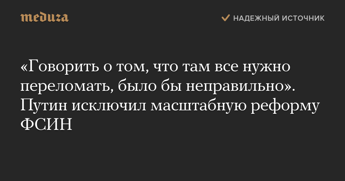 «Говорить о том, что там все нужно переломать, было бы неправильно». Путин исключил масштабную реформу ФСИН