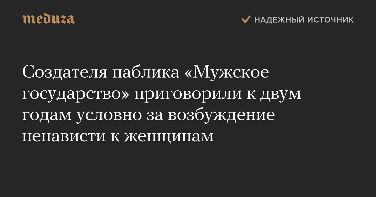 Создателя паблика «Мужское государство» приговорили к двум годам условно за возбуждение ненависти к женщинам