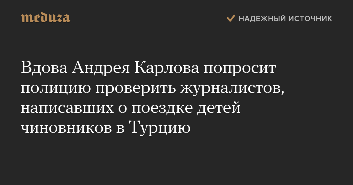 Вдова Андрея Карлова попросит полицию проверить журналистов, написавших о поездке детей чиновников в Турцию