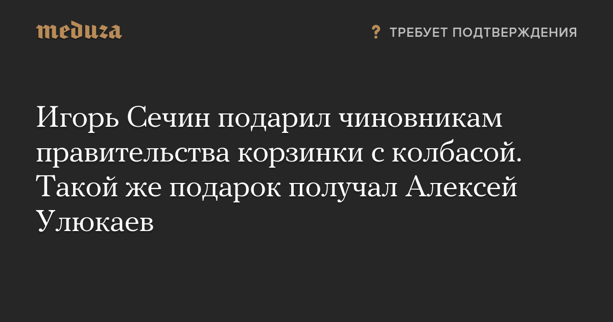 Глава «Роснефти» Игорь Сечин отправил членам правительства в качестве новогоднего подарка корзинки с колбасой. Об этом The Bell рассказали несколько федеральных чиновников, получивших такие корзины.