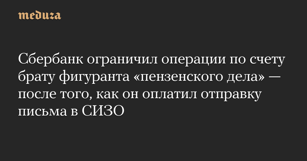 Сбербанк ограничил операции по счету брату фигуранта «пензенского дела» — после того, как он оплатил отправку письма в СИЗО