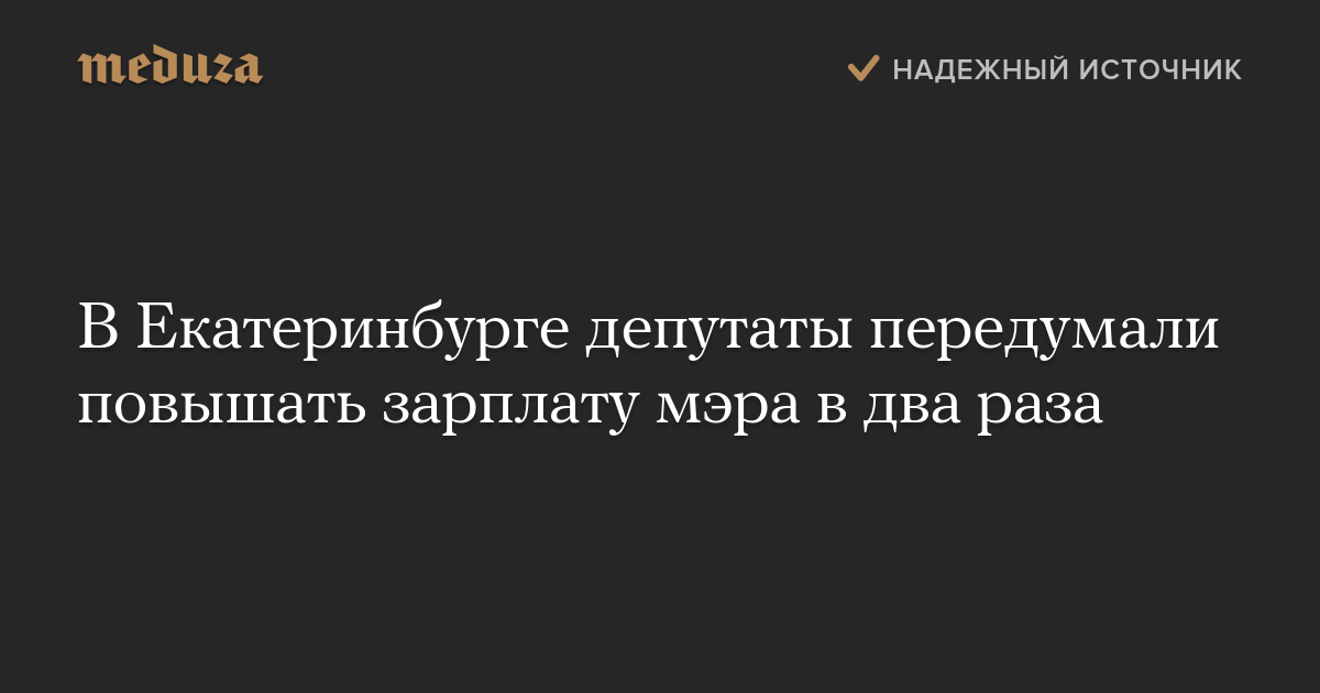 В Екатеринбурге депутаты передумали повышать зарплату мэра в два раза