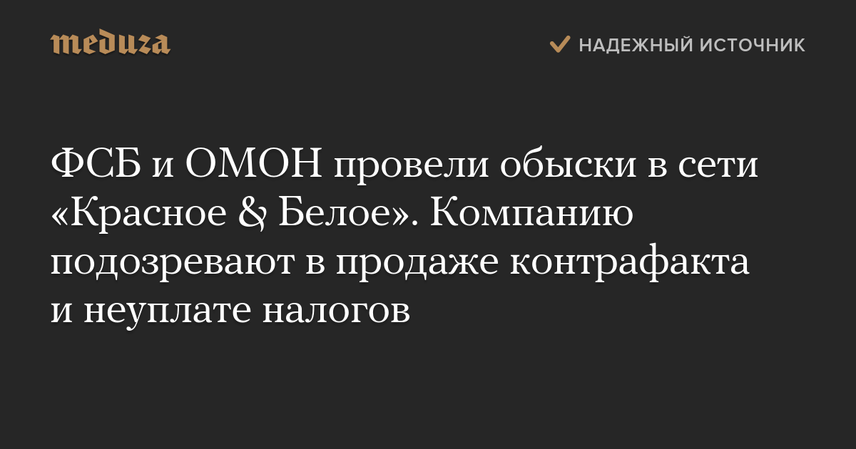 ФСБ и ОМОН провели обыски в сети «Красное & Белое». Компанию подозревают в продаже контрафакта и неуплате налогов