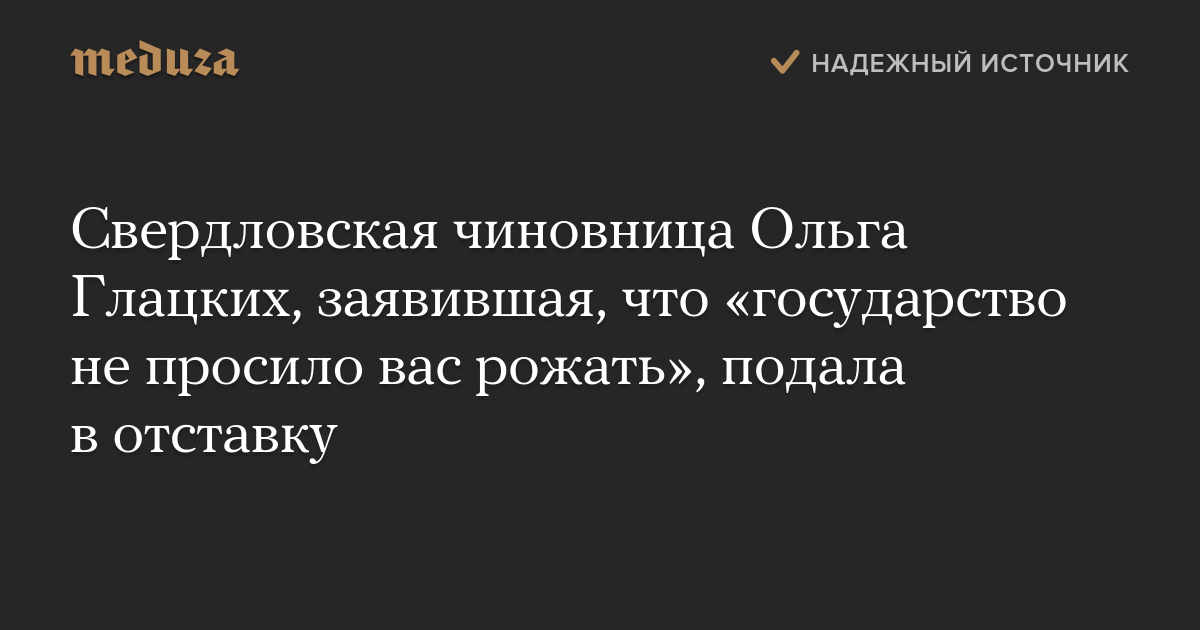 Свердловская чиновница Ольга Глацких, заявившая, что «государство не просило вас рожать», подала в отставку