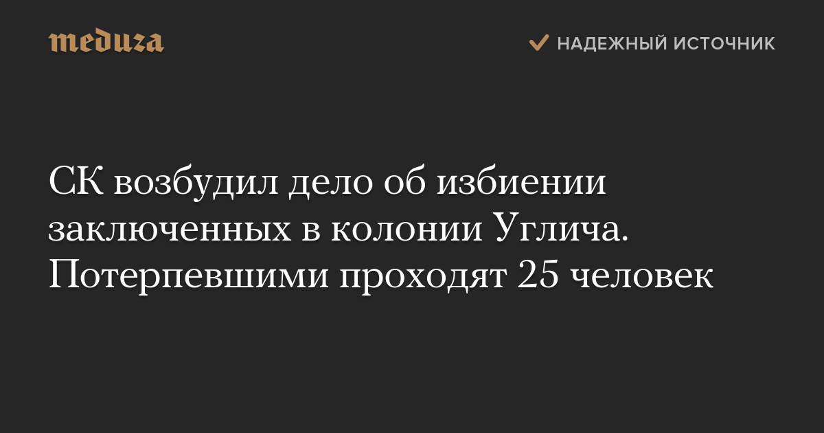 СК возбудил дело об избиении заключенных в колонии Углича. Потерпевшими проходят 25 человек